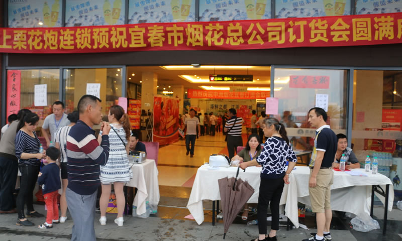 宜春是上栗花炮连锁的重要业务领域,2016年,上栗花炮连锁与宜春市图安烟花爆竹有限公司(现已并入宜春市烟花总公司)达成了合作协议,是公司非常重视的合作伙伴。公司对于此次订货会十分重视,不仅投入了相当的广告宣传,还派往业务部、产品部多名精英代表参加了此次订货会。