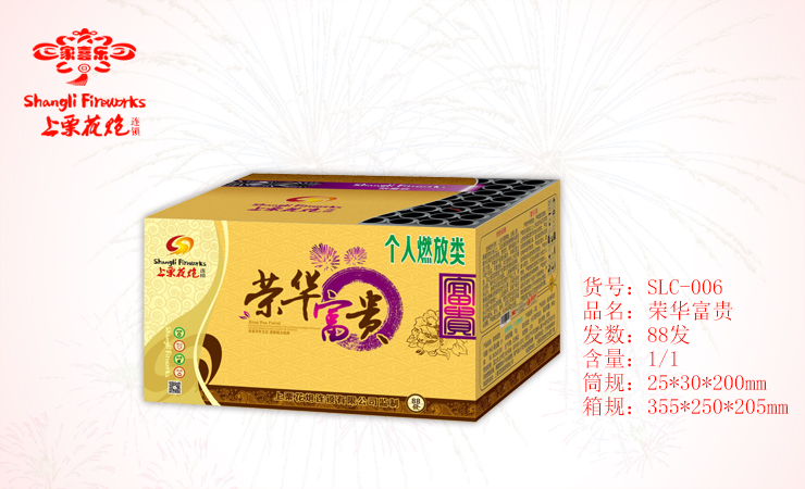 荣者,荣耀也;华者,发达也;富者,财富也;贵者,珍贵也。金冠彩珠,四发齐上,点亮星空那一刻,整体恢宏,气势磅礴,传递着喜庆吉祥之情,寓意繁荣昌盛、事业兴旺发达。