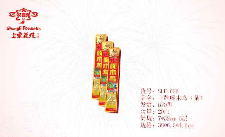 啄木鸟作为中国传统的鞭炮产品之一,其声音响,威力强大,能很好地烘托出热闹的气氛,是每个喜庆日子都值得燃上一发的品种。 2.jpg